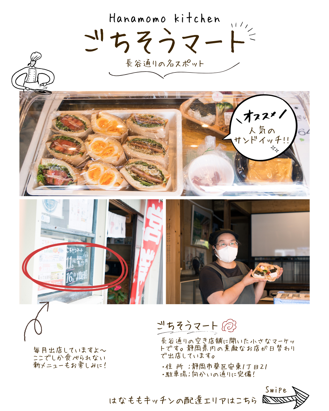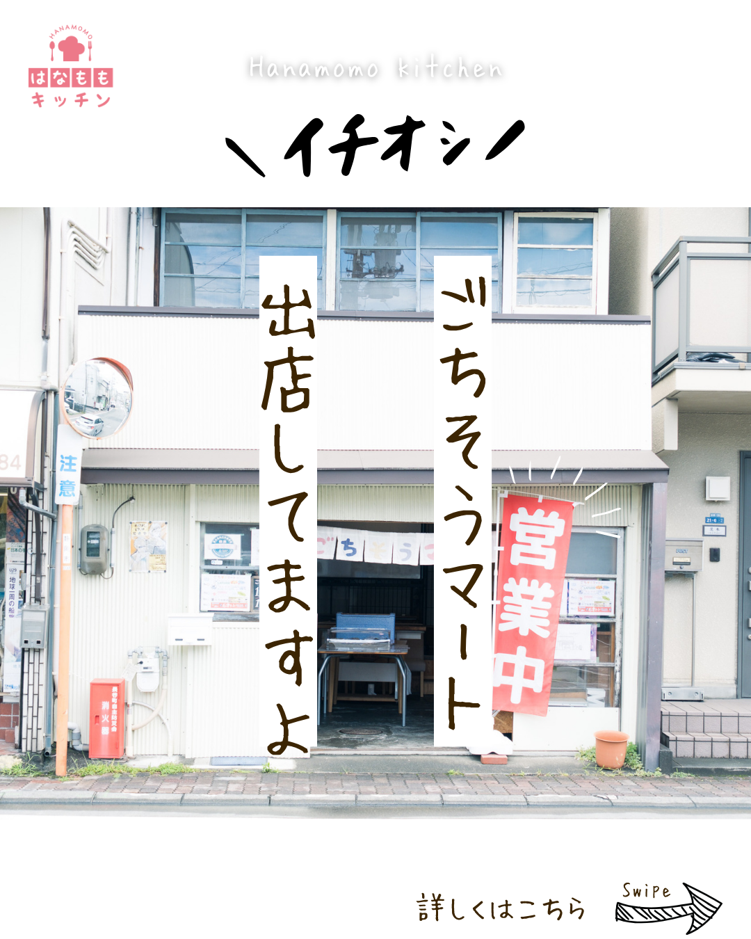 長谷通りの空き店舗をリノベした小さなマーケット「ごちそうマート」に、はなももキッチンが出張出店中!地元の旬が詰まったお弁当、ぜひお手にとってみてくださいね。